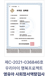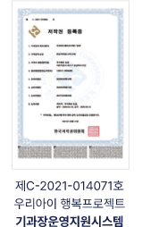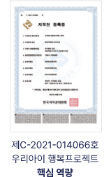 - 부모·주양육자가 실시,전문가 감수(노규식 박사), 데이터 기반 개발, 특허 출원 및 ·저작권 등록 완료